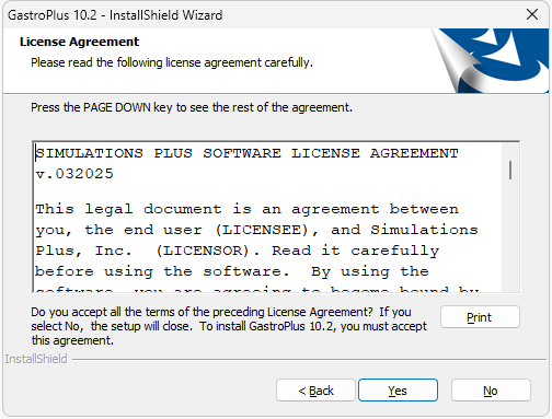 GastroPlus® 10.2(以下、GastroPlus) のインストールは、管理者権限で行う必要があります。また、ネットワーク版インストールの場合、アプリケーションを実行するためには、Reprise ライセンスサーバー(RLM) へのアクセスが必要になります。