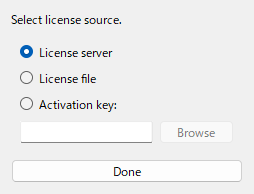※ ノードロックライセンスの場合は、License file あるいは Activation key を選択することになります。詳しくはお問合せください。